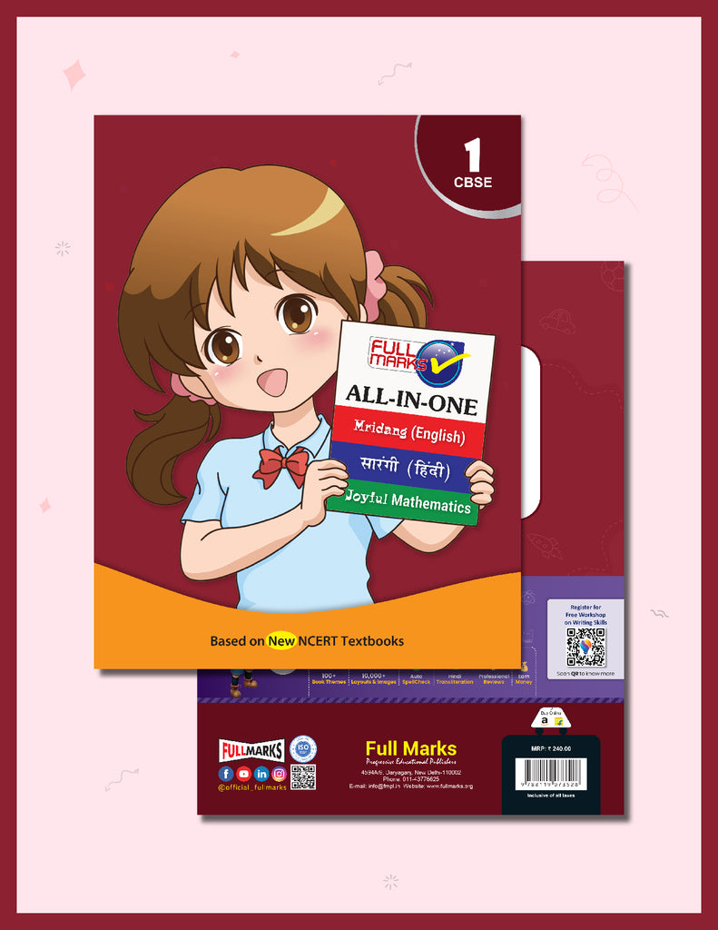 Full Marks All-in-One Class 1 | Complete Study Material for English, Hindi & Maths | Based on New NCERT Textbooks – Mridang, Sarangi, Joyful Mathematics | Aligned with Latest CBSE Syllabus