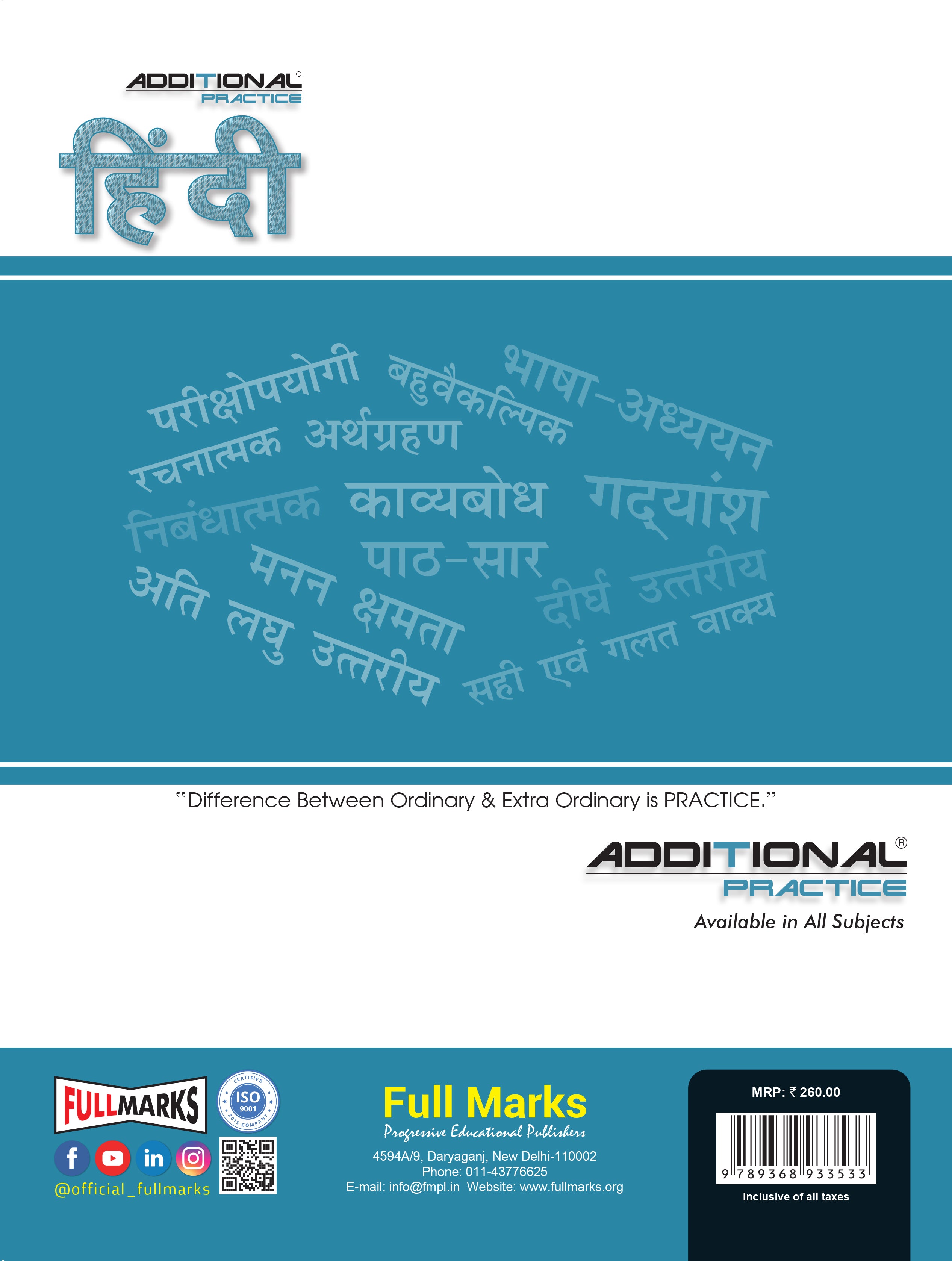 Full Marks Additional Practice – Hindi B Workbook Class 9 | Based on NCERT Textbook Sparsh-1, Sanchayan-1