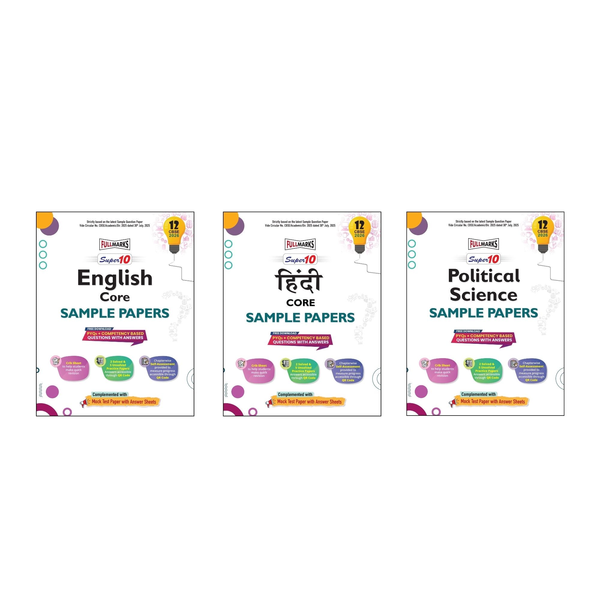 Full Marks Super 10 Sample Paper Combo of 3 for Class 12 – English Core + Hindi Core + Political Science | Latest Sample Papers for CBSE 2026 Exam