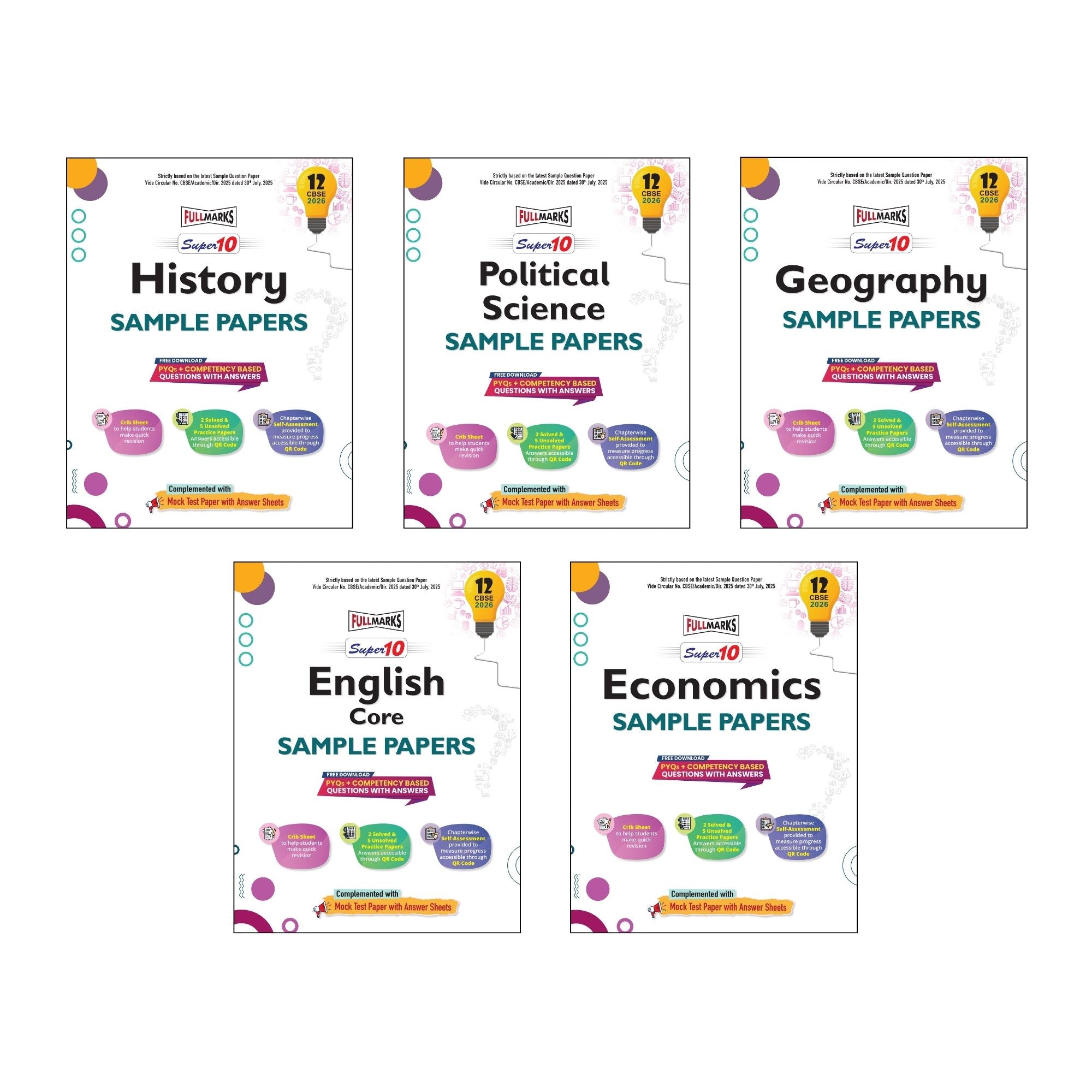 Full Marks Super 10 Sample Paper Combo of 5 for Class 12 – History + Political Science + Geography + English Core + Economics| Latest Sample Papers for CBSE 2026 Exam