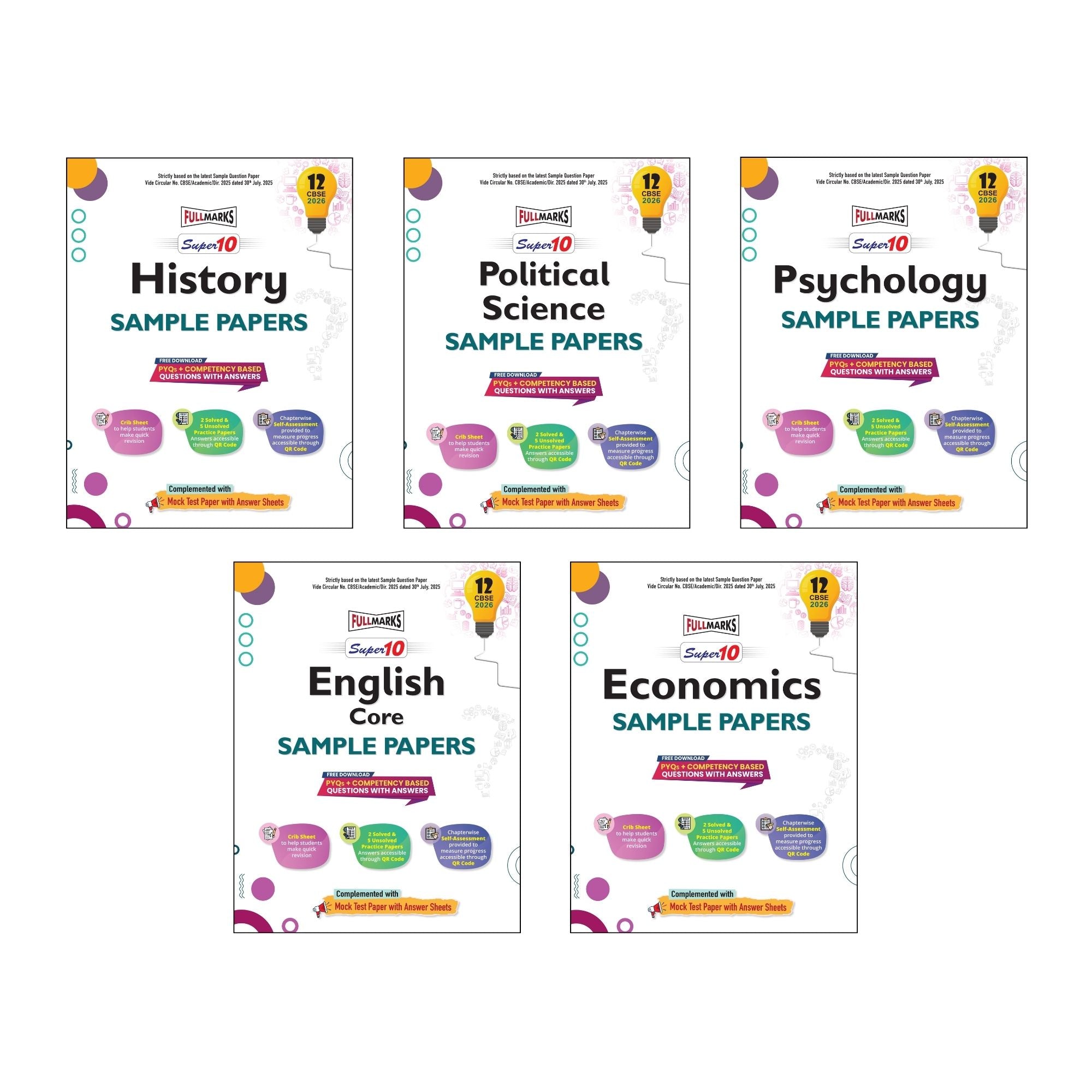 Full Marks Super 10 Sample Paper Combo of 5 for Class 12 – History + Political Science + Psychology + English Core + Economics| Latest Sample Papers for CBSE 2026 Exam
