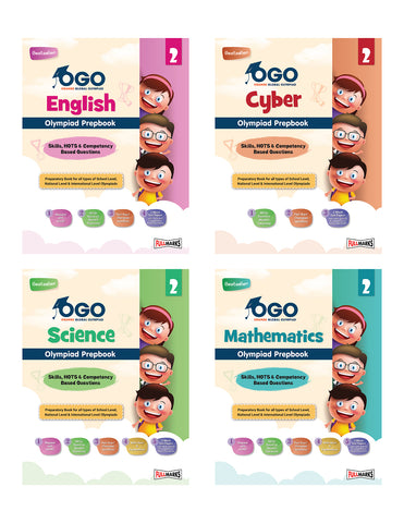 Prepare your child for the Olympiad for Class 8 with the Full Marks OGO Olympiad Prepbook Combo. This 5 books set covers Maths Olympiad Class 8, Science Olympiad Class 8, English Olympiad Class 8, Logical Reasoning Olympiad Class 8, and Cyber Olympiad Class 8, tailored for the 2024-25 academic year. Each book aligns with CBSE, CISCE, State Boards, and International Boards' syllabi. Math Olympiad Class 8: Engaging workbook with over 500 concepts, interactive visuals, and three levels of questions—Level 1, Level 2, and Achievers. Includes practice papers, HOTS questions, and simple reviews to make learning math enjoyable. Olympiad books for Class 8 science: Provides a thorough understanding with varied question levels, detailed theory, and visual aids. Features chapter-wise questions, model test papers, and an Achiever’s Section. English Olympiad Class 8: An interactive learning tool and concept videos. Includes three levels of questions and practical tips. Analytical Reasoning Book Class 8: Focuses on developing analytical and logical skills with diverse exercises and clear explanations. Aligns with current exam patterns and supports competitive exam preparation. Cyber Olympiad Class 8: Enhances 21st-century skills with MCQs across six cognitive levels and Competency-Based questions. Simplifies theoretical and practical aspects for a thorough understanding. Key Features: These Olympiad Books Class 8 cover Mathematics, Science, English, Reasoning, and Cyber Subjects These Class 8 Olympiad books 2024-25 have engaging content with visuals, concept videos, and fun exercises. Matches CBSE, CISCE, State Boards, and International Boards' curricula.