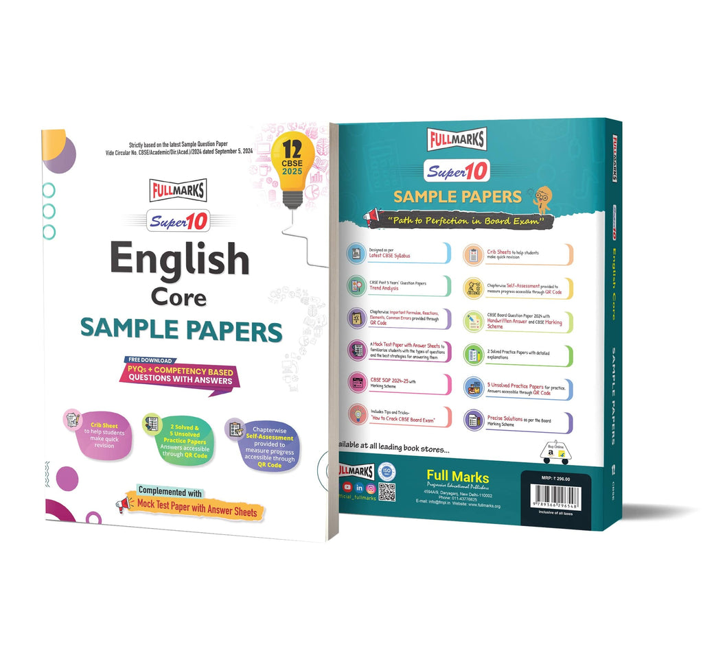 Full Marks Super10 English Core Sample Paper Class 12 – for CBSE 2026 Exams | Based on Latest CBSE Guidelines | Competency-Based Questions, PYQs, Practice Papers, Crib Sheet & Self-Assessment Tools